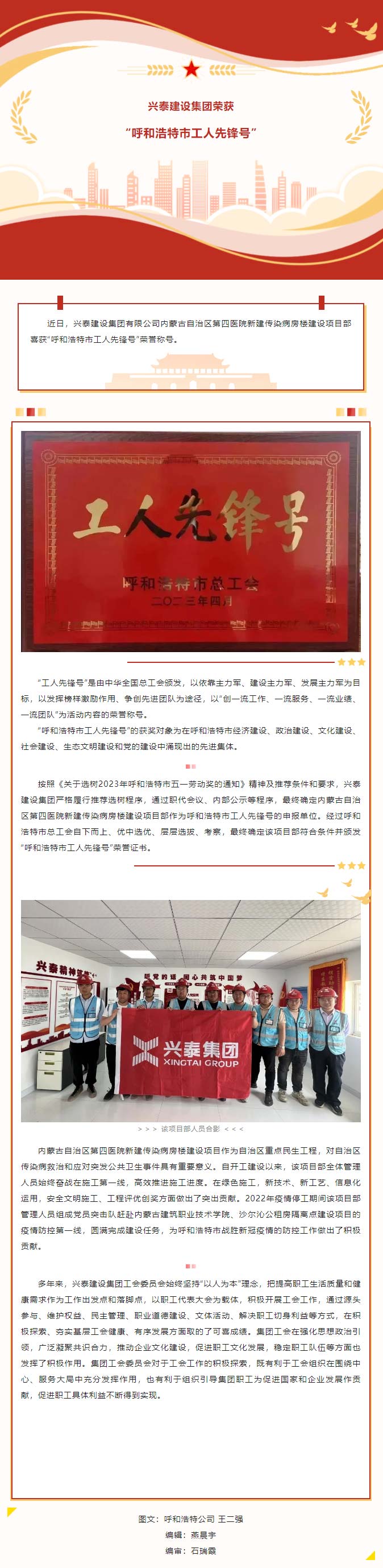 興泰建設(shè)集團(tuán)榮獲“呼和浩特市工人先鋒號(hào)”