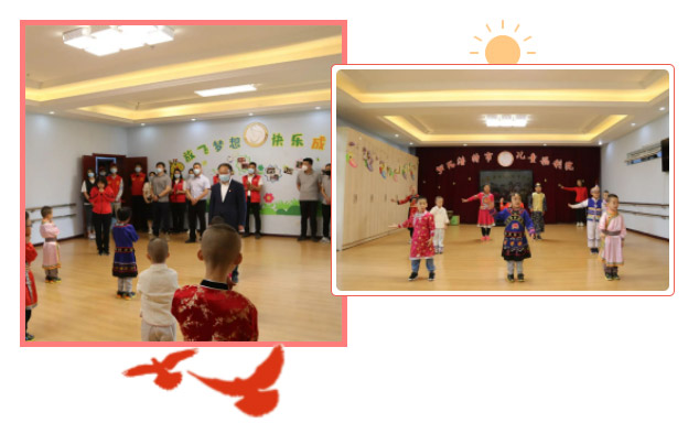 興泰建設(shè)集團(tuán)呼和浩特區(qū)域黨支部、興泰職業(yè)培訓(xùn)學(xué)校黨支部及各聯(lián)合單位將精心準(zhǔn)備的愛心禮物交給孩子們。為表達(dá)對各黨支部志愿服務(wù)隊(duì)的感謝之情,福利院的兒童代表為大家表演了手語蹈《感恩的心》。