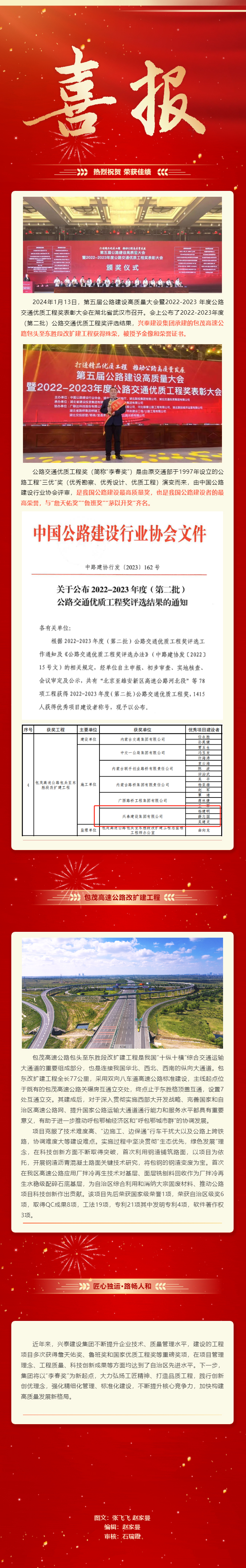 新年伊始 捷報頻傳 | 興泰建設(shè)集團榮獲“公路交通優(yōu)質(zhì)工程獎(李春獎)”