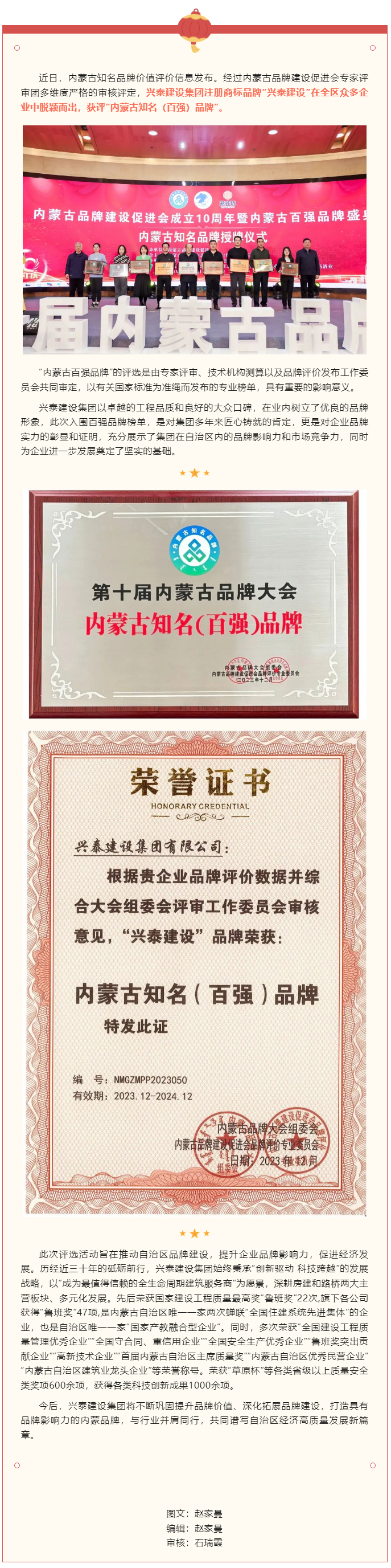 “興泰建設(shè)”喜獲內(nèi)蒙古知名(百強(qiáng))品牌榮譽(yù)