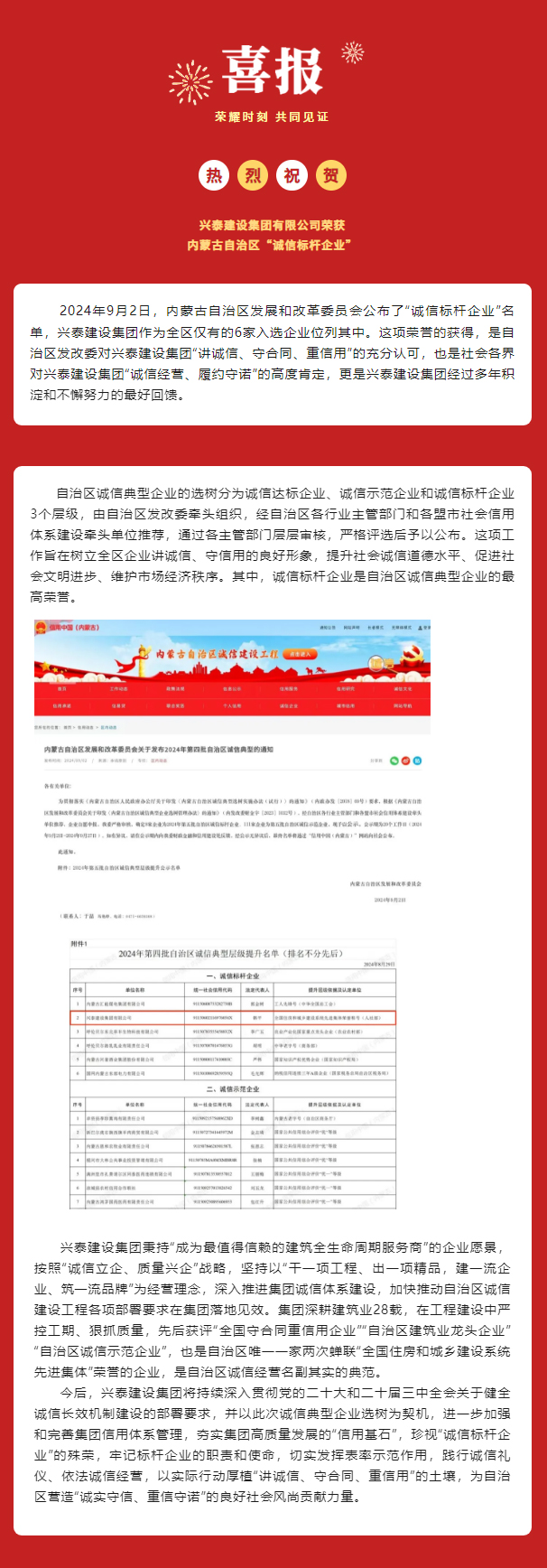 興泰建設(shè)集團(tuán)喜獲內(nèi)蒙古自治區(qū)“誠信標(biāo)桿企業(yè)”